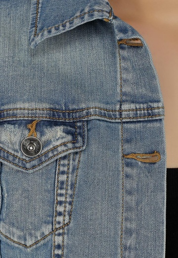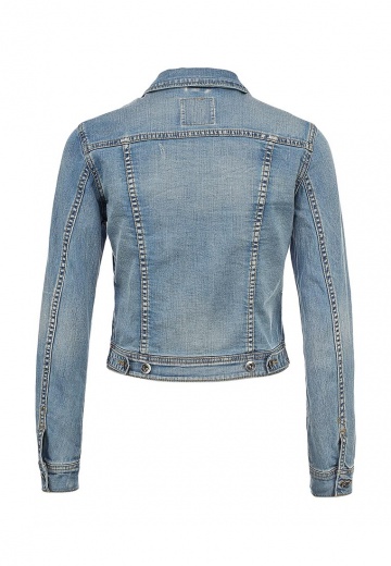 Джинсовая куртка Sela укороченного фасона выполнена из хлопкового денима светло-синего оттенка. Детали: прямой крой, отложной воротник, внешние карманы, контрастная строчка, декоративные потертости.