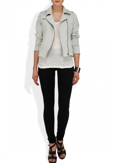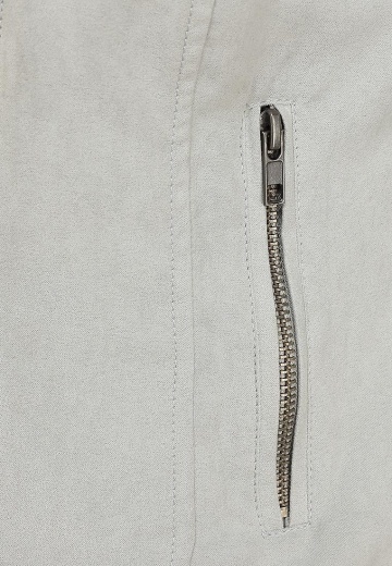 Женская куртка светло-серого цвета от Camelot выполнена из мягкой искусственной замши. Модель прилегающего силуэта. Детали: отложной воротник, застежка-молния, карманы на молниях, тонкая гладкая подкладка.